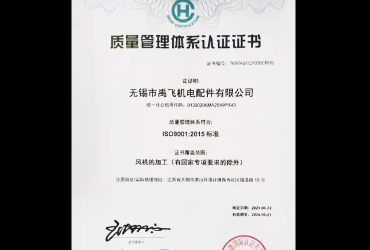 公司執行GB/T22712-2008《變電機用G系列冷卻風機技術規范》國家標準,并且通過了ISO 9001:2015質量管理體系認證、ISO 14001:2015環境體系認證,已擁有年產各類風機、冷卻器十萬臺套的較大生產規模,產品遠銷東南亞等國家與地區。